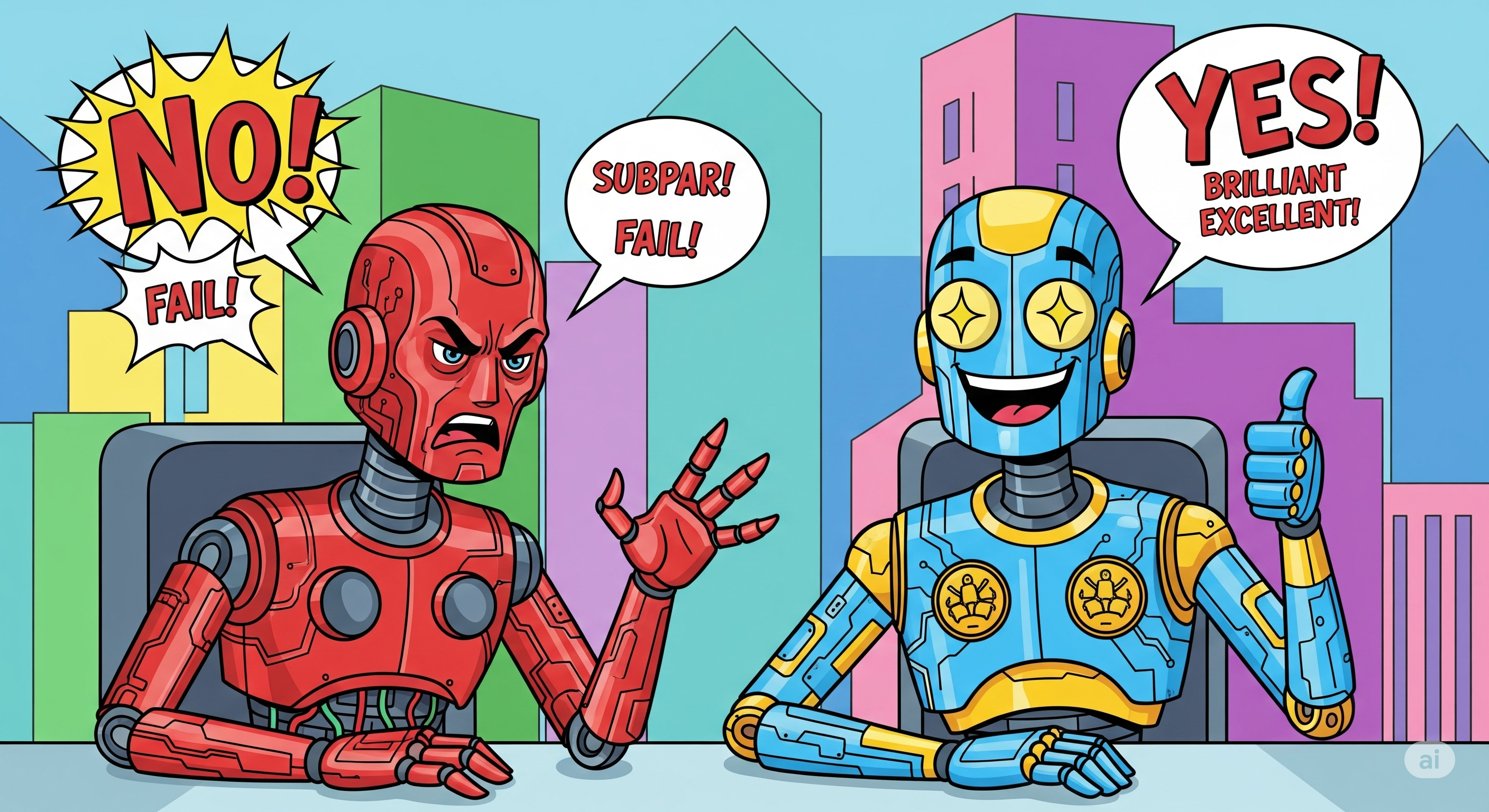 하지만 이 과정에서 또 다른 극단적인 문제점이 나타났는데, 그것은 바로 과도한 보수적 평가와 부정적인 경향입니다. GPT-5는 이제 사용자에게 무조건적인 긍정적 평가를 제공하는 대신, 너무 엄격하고 낮은 점수를 부여하는 경향을 보인다. 심지어 평가 기준을 매우 높게 설정해, 작은 흠결에도 점수를 크게 깎아내리는 모습을 자주 보인다.