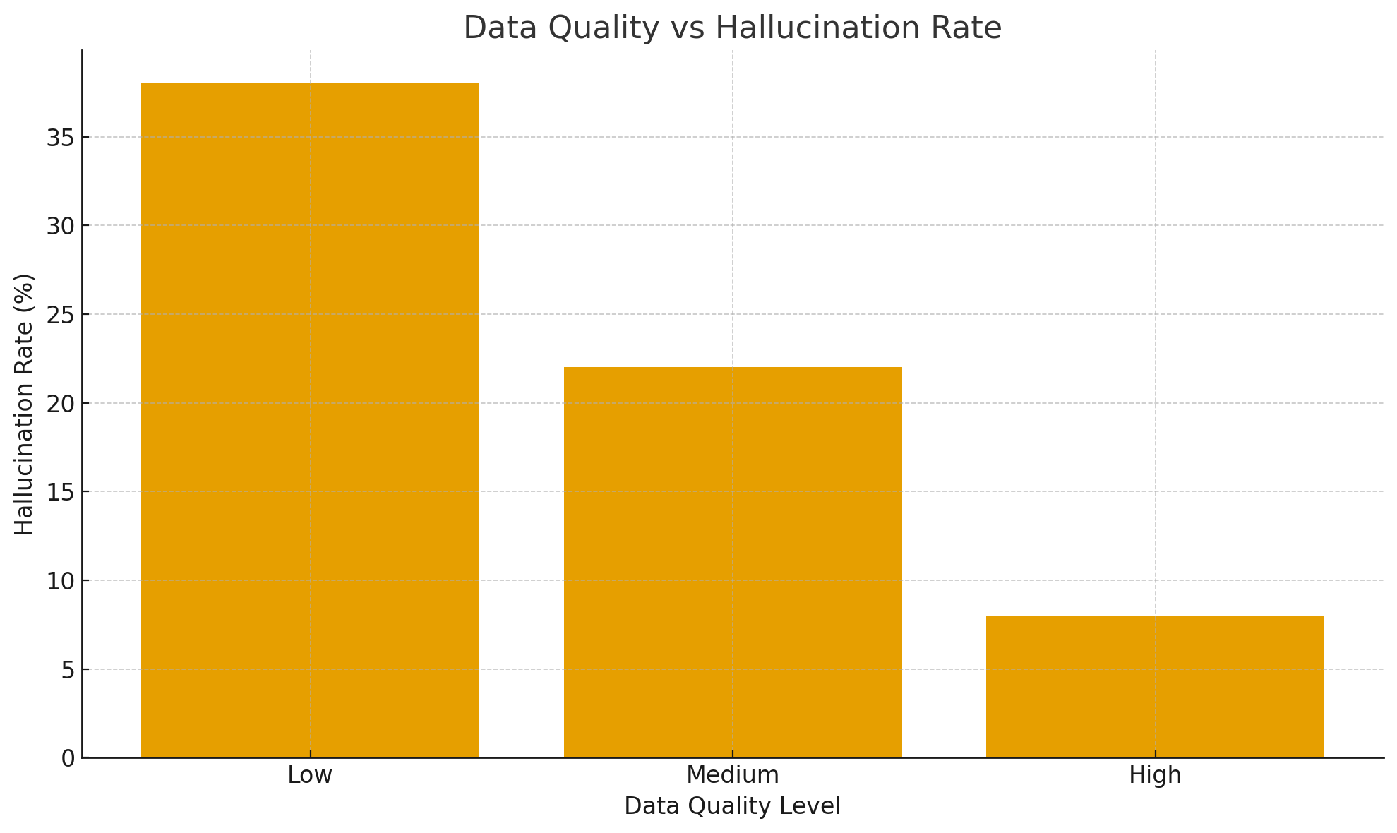 환각, 편향, 추론 붕괴는 대부분 노이즈·불균형·오염된 데이터, 그리고 배포 후 실패 사례를 반영하지 못하는 피드백 루프 부재에서 비롯된다. 현대 LLM은 거대한 크기의 웹 데이터에 의존하고 있는데, 그 안에는 스팸·중복·낮은 신뢰도 문서가 대량 포함되어 있다. 정제 방식은 느슨하고, 도메인 데이터는 부족하다.